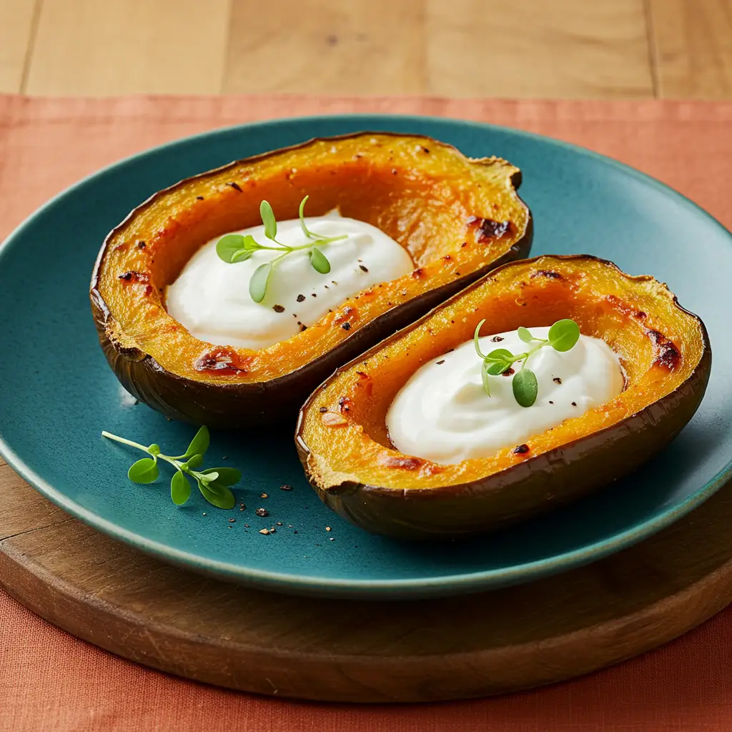 Abóbora assada com um toque de especiarias, macia e saborosa, acompanhada de um delicioso molho cremoso de iogurte e tahine. Uma receita simples e perfeita para um jantar especial.