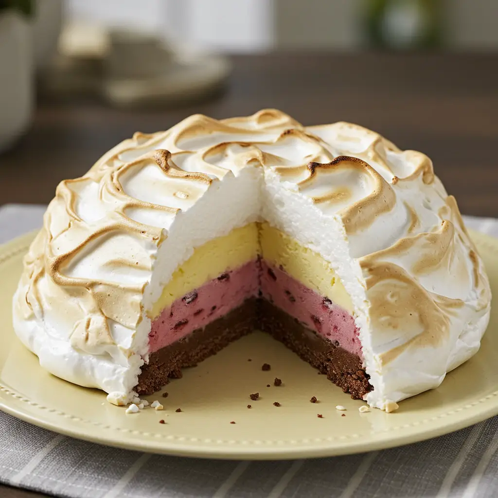 Alaska Brasileira: Bolo de Baunilha com Sorvete e Chocolate
