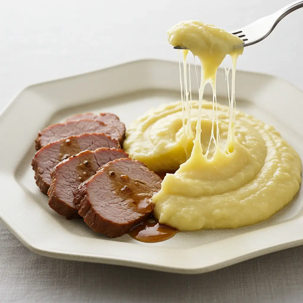 Um purê de batatas cremoso e irresistível, com queijo derretido formando longos filamentos. Um toque de alho e creme de leite completam essa delícia. Perfeito como acompanhamento ou prato principal!