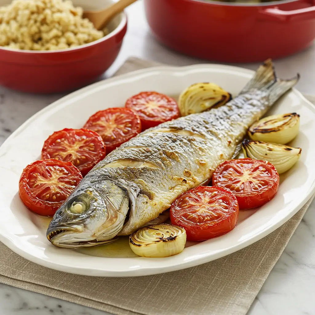 Durante o cozimento, regue o peixe com o caldo do refratário de tempos em tempos.