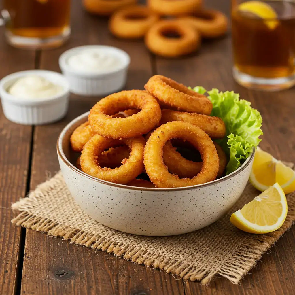 Deliciosos anéis de cebola, crocantes por fora e macios por dentro, perfeitos para acompanhar seus pratos favoritos. Uma receita simples e rápida, ideal para um lanche ou aperitivo.