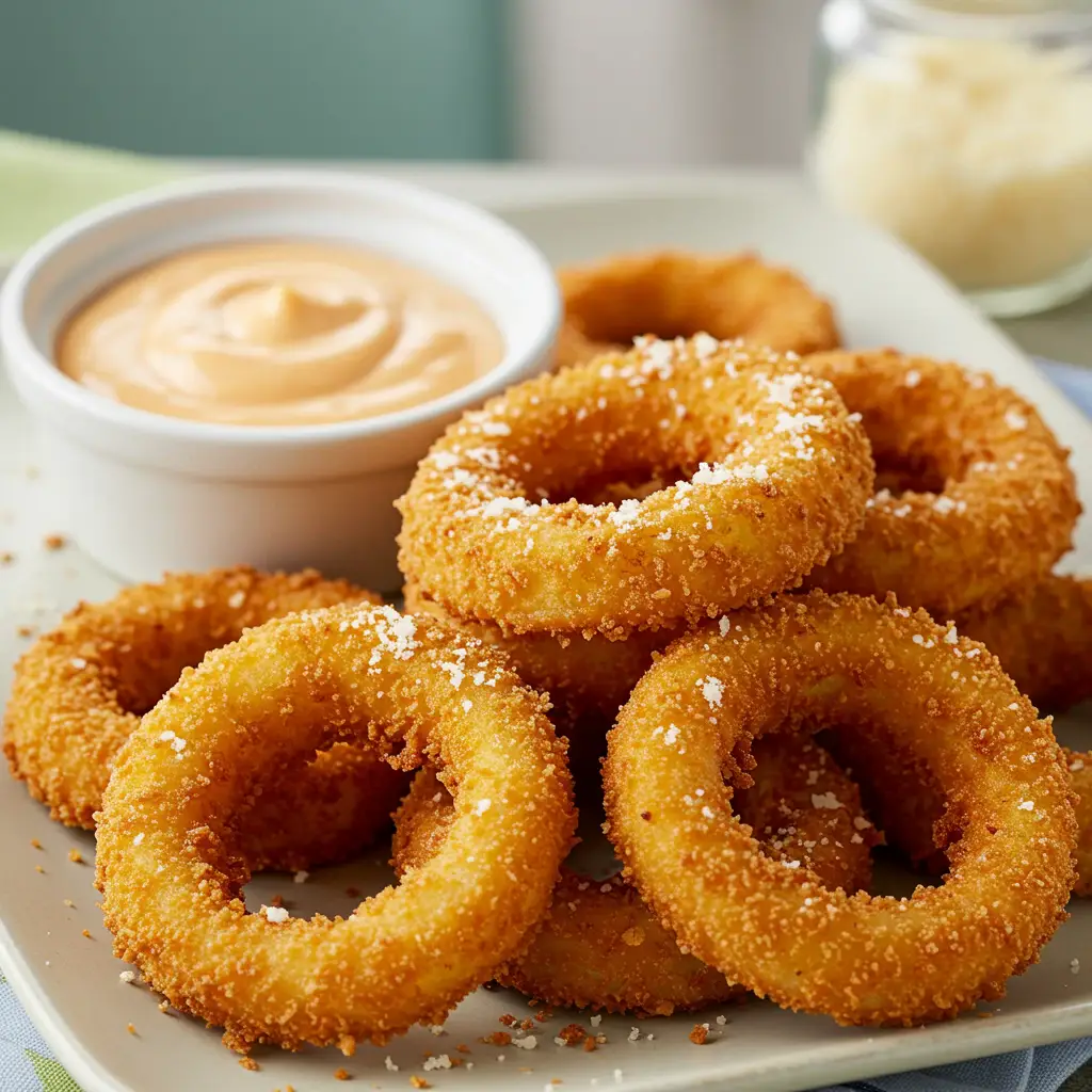 Sirva os anéis de cebola empanados quentes.