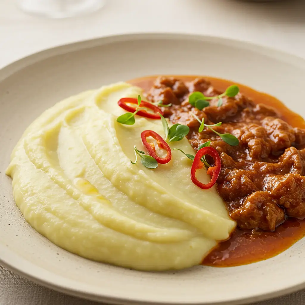 Um angu cremoso e saboroso, com calabresa defumada, finalizado com gorgonzola e ervas frescas. Uma combinação perfeita de texturas e sabores da culinária brasileira.
