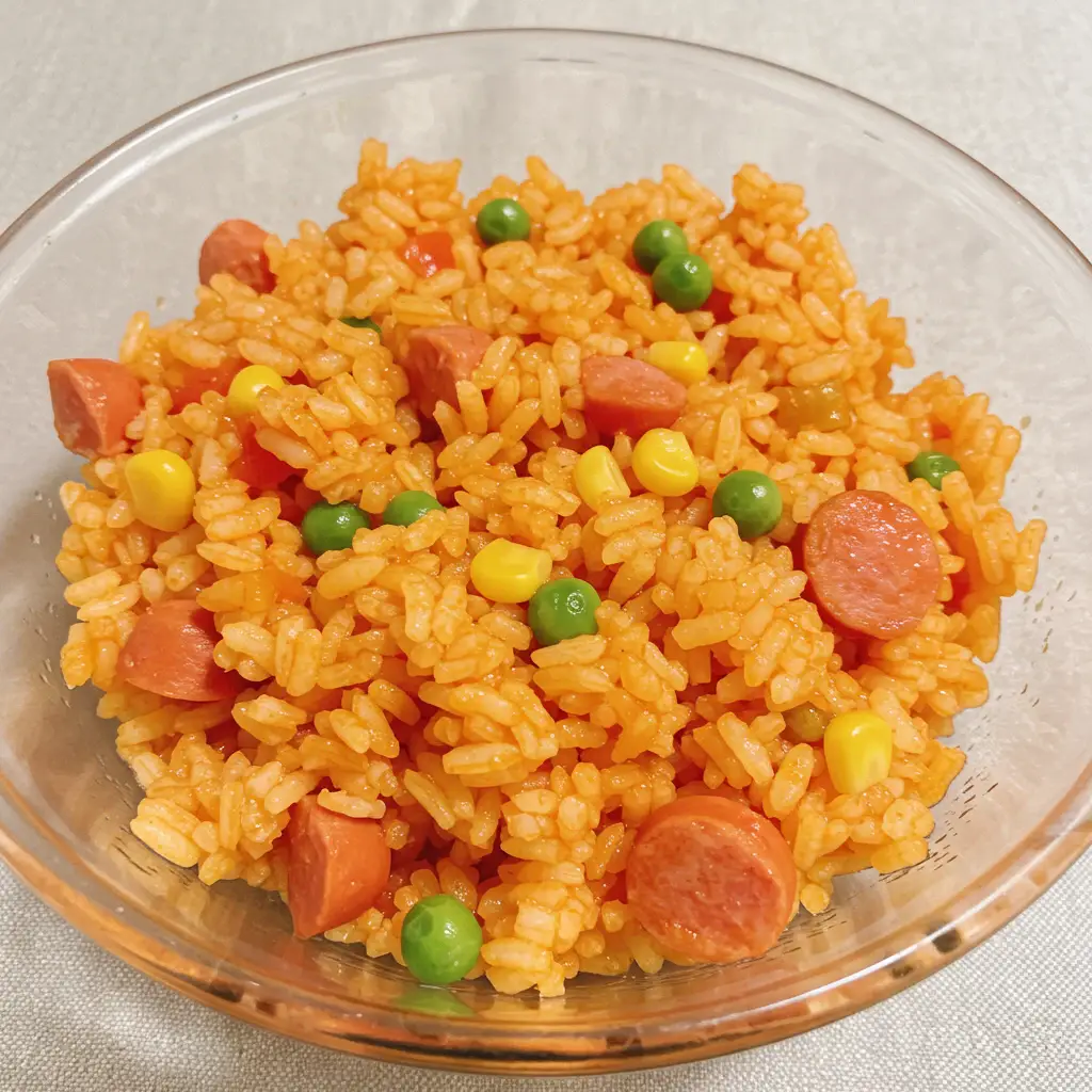 Uma combinação deliciosa de arroz soltinho com um molho de tomate rico e recheado de legumes, perfeito para uma refeição prática e saborosa em família.