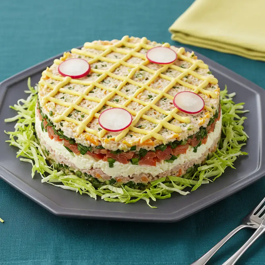 Um prato brasileiro prático e saboroso! Camadas de arroz, ovos mexidos com tomate, e atum cremoso criam uma apresentação vibrante e um sabor irresistível. Ideal para um almoço ou jantar informal.