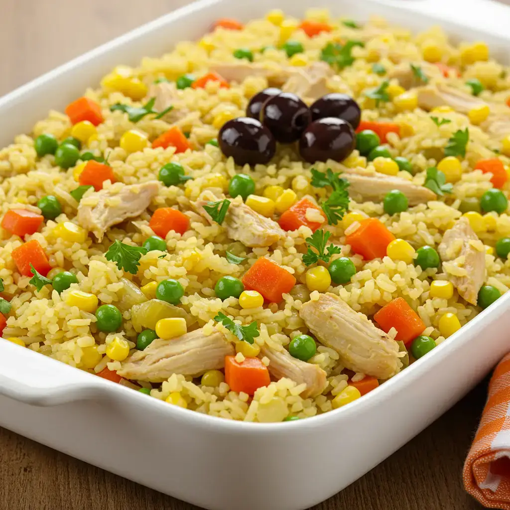 Um arroz soltinho e saboroso, com frango desfiado e legumes frescos. Prato prático e cheio de sabor, perfeito para o dia a dia. Uma receita simples e deliciosa para toda a família.