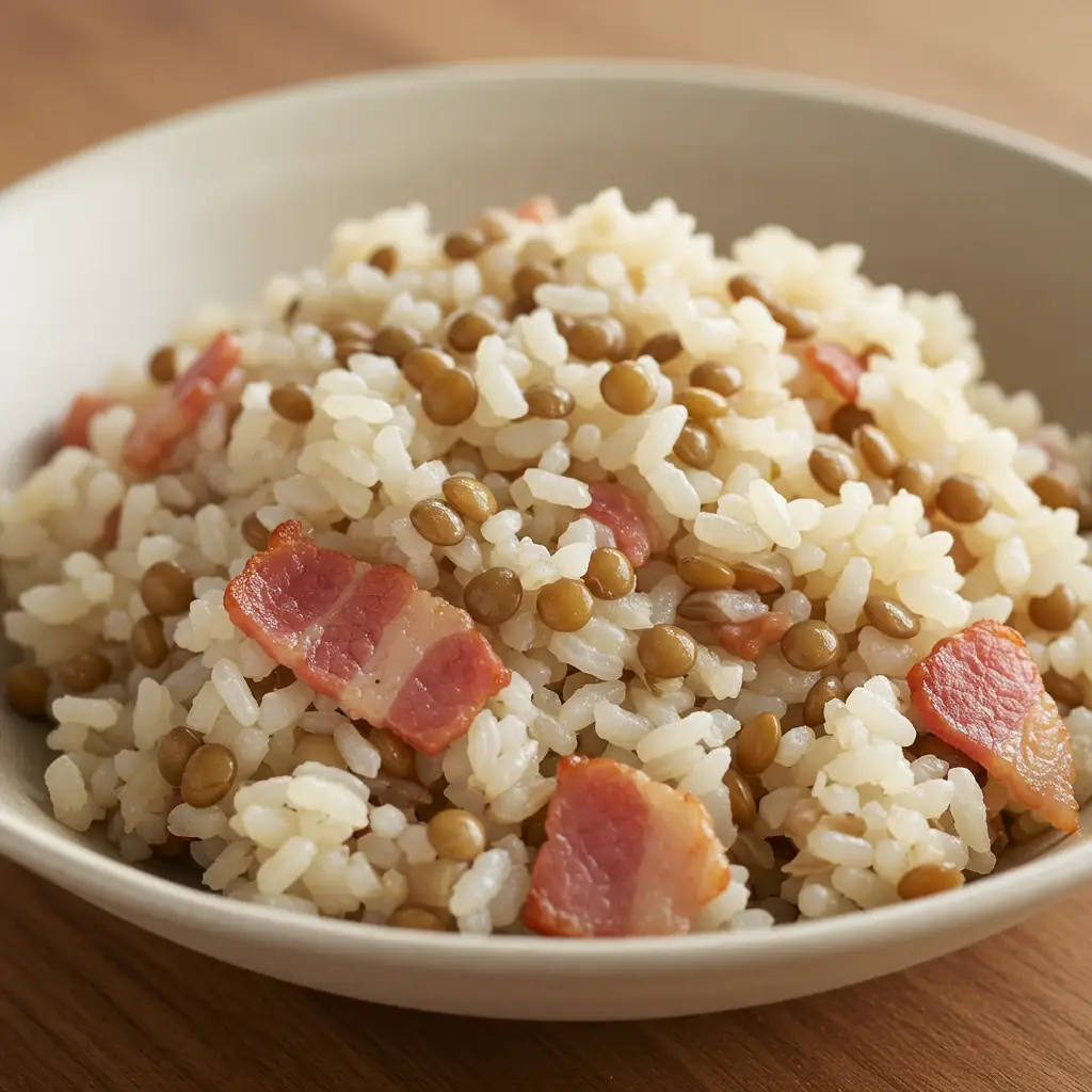 Um prato brasileiro saboroso e reconfortante! O sabor defumado do bacon realça o sabor da lentilha e do arroz, criando uma combinação perfeita para um almoço ou jantar.