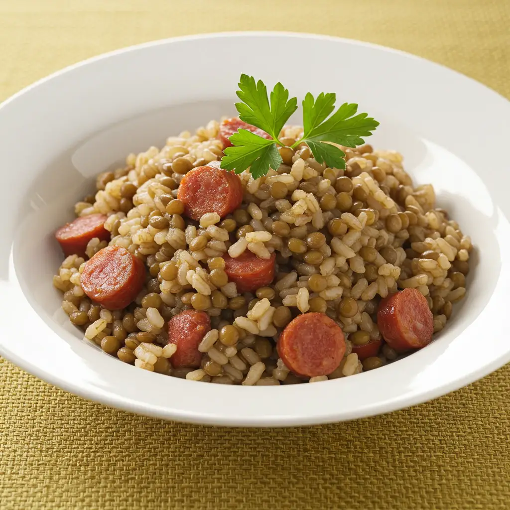 Um prato brasileiro simples e saboroso, perfeito para um almoço reconfortante. O arroz, a lentilha e a calabresa formam uma combinação deliciosa e nutritiva, ideal para o dia a dia.