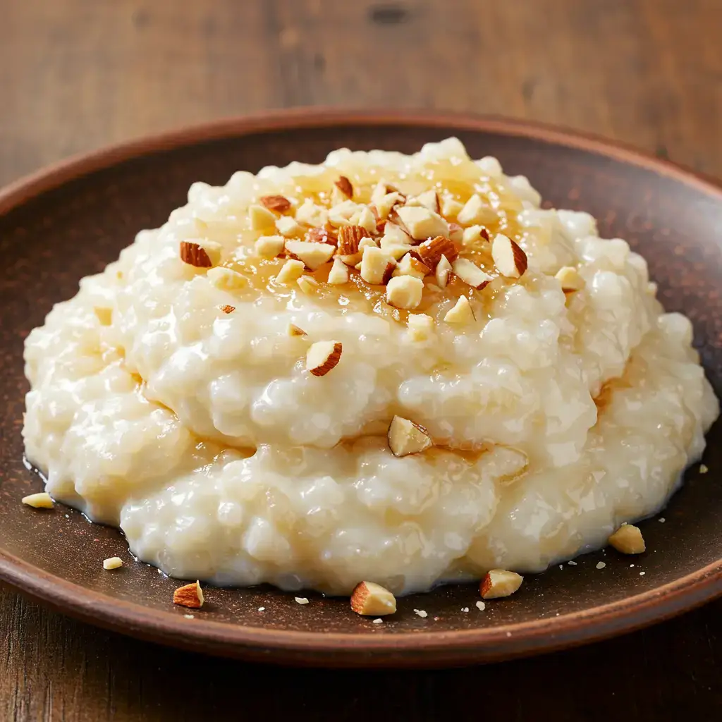 Um arroz cremoso e perfumado, com o toque especial do licor de laranja e a crocância das amêndoas. Uma sobremesa deliciosa e sofisticada, perfeita para um jantar especial.