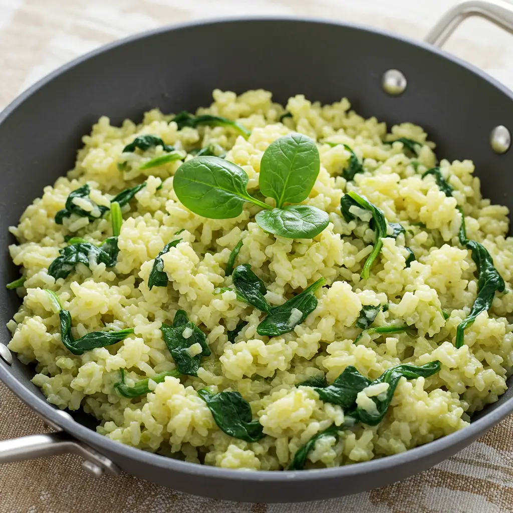 Um prato simples e saboroso, perfeito para um almoço leve e nutritivo. O arroz cremoso se harmoniza perfeitamente com o sabor levemente amargo do espinafre, criando uma combinação equilibrada e deliciosa.