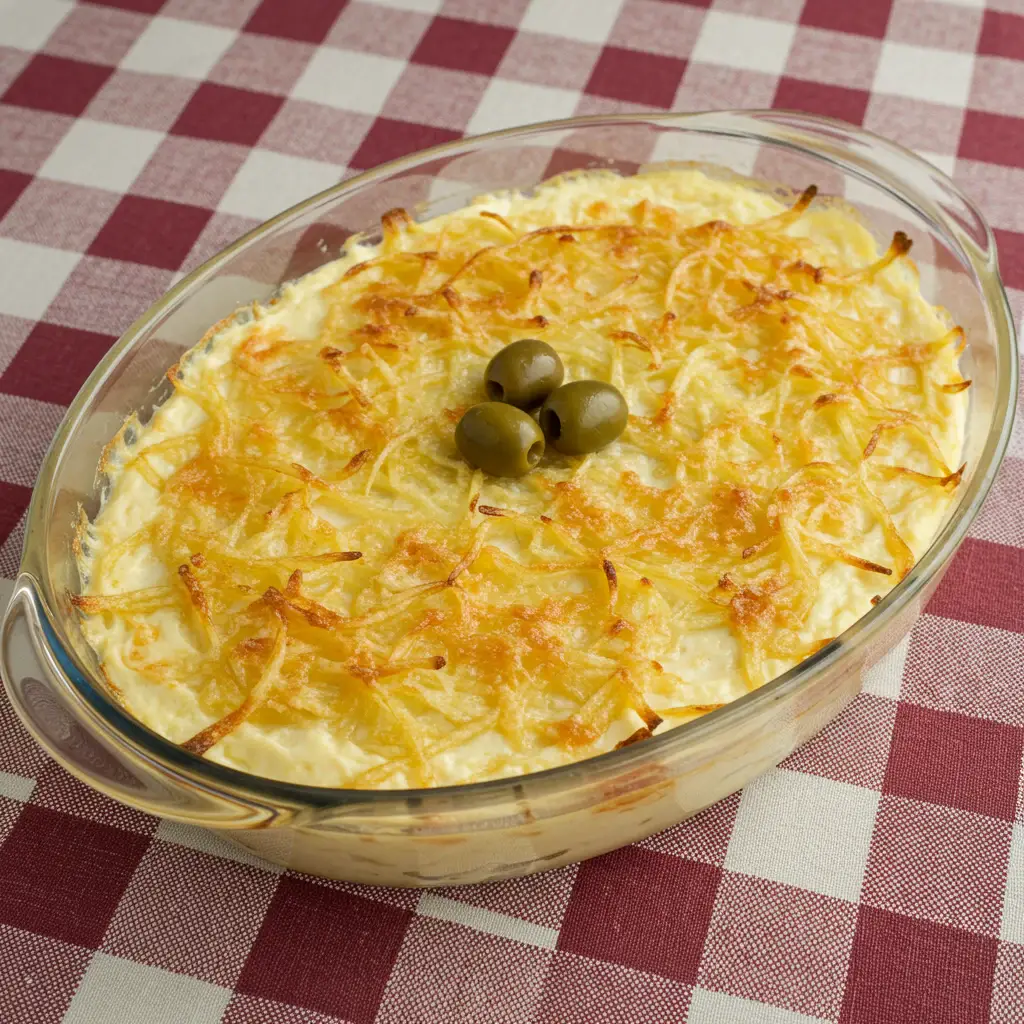 Um prato brasileiro reconfortante e saboroso! Arroz cremoso, frango desfiado suculento e um purê de batatas macio, gratinado com batata palha crocante. Uma combinação perfeita para um almoço ou jantar em família.