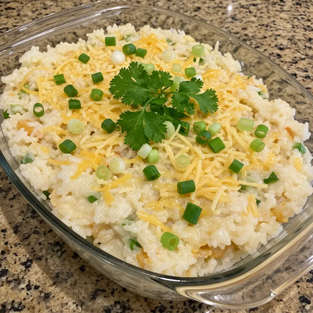 Leve ao forno preaquecido a 180°C por 15 a 20 minutos, ou até que o queijo esteja dourado e o arroz esteja aquecido.