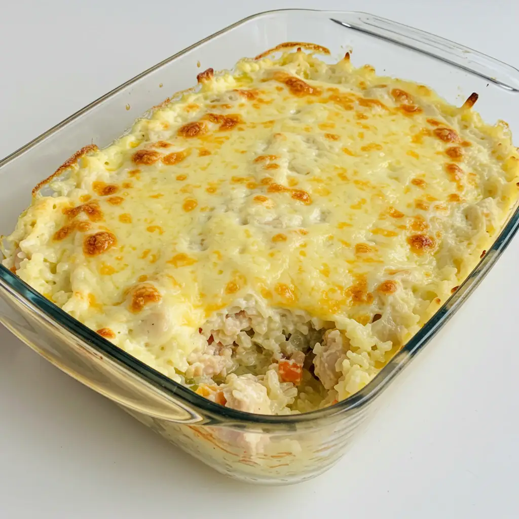 Um arroz de forno cremoso e saboroso, com frango suculento, azeitonas, milho e um toque especial de molho cheddar. Uma receita prática e perfeita para um almoço ou jantar em família.