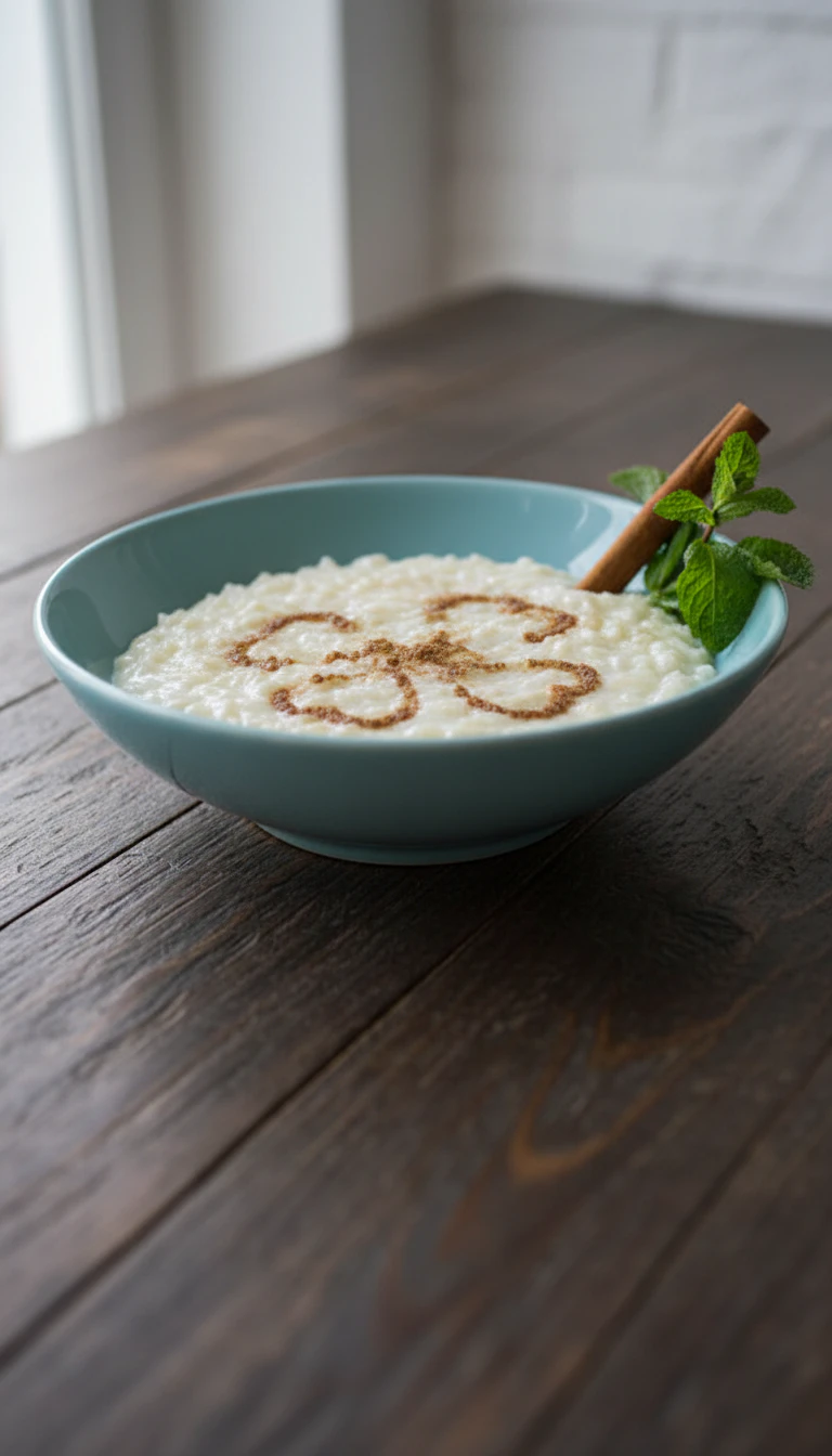 Um clássico arroz-doce brasileiro, cremoso e perfumado com água de rosas e um toque de canela. Doce na medida certa, ideal para um final de tarde especial.