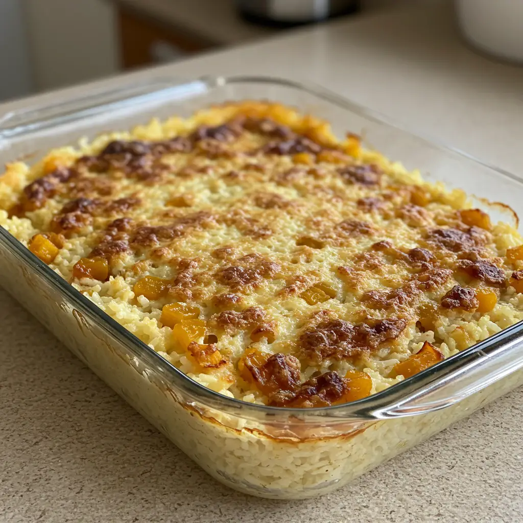 Em um refratário médio, faça camadas: arroz, carne moída, queijo mussarela e banana caramelizada. Repita as camadas.