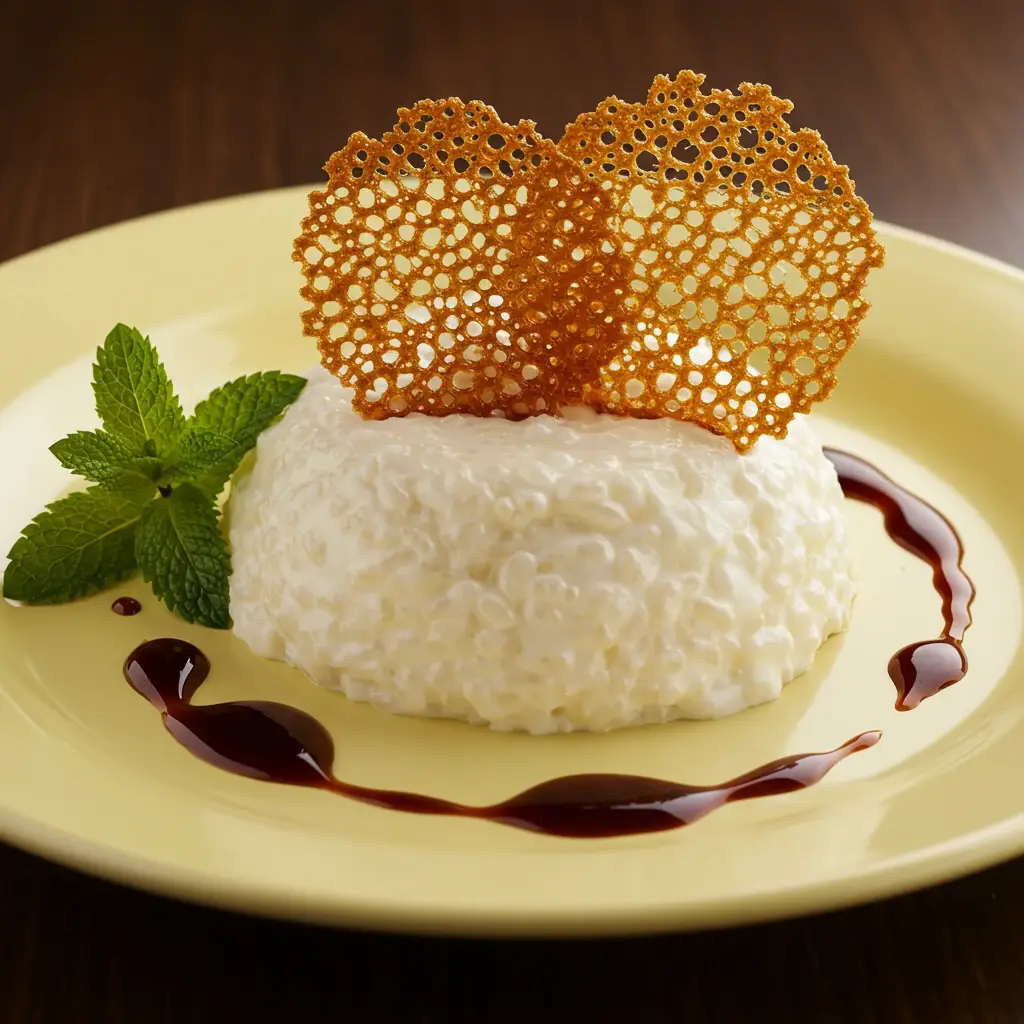 Um doce saboroso e reconfortante! Arroz integral cremoso, perfumado com pinhão e finalizado com um crocante de canela irresistível. Uma experiência gastronômica única.