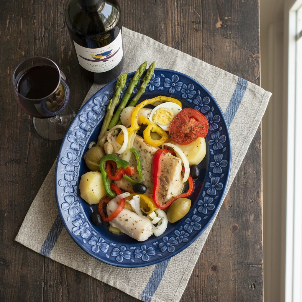 Um clássico da culinária portuguesa, este bacalhau é preparado com batatas, pimentões coloridos e um toque de azeite extra virgem. Uma combinação perfeita de sabores e texturas que agrada a todos.
