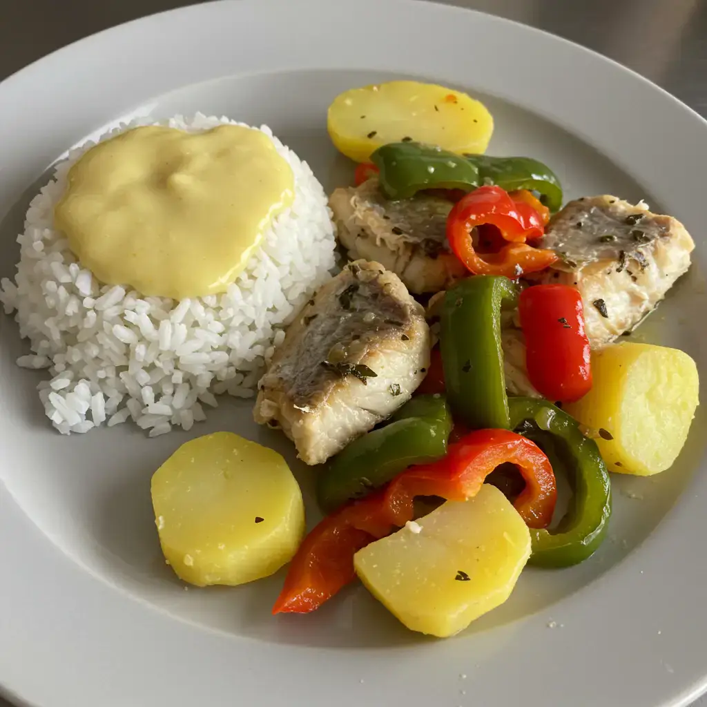Bacalhau assado com batatas e pimentões