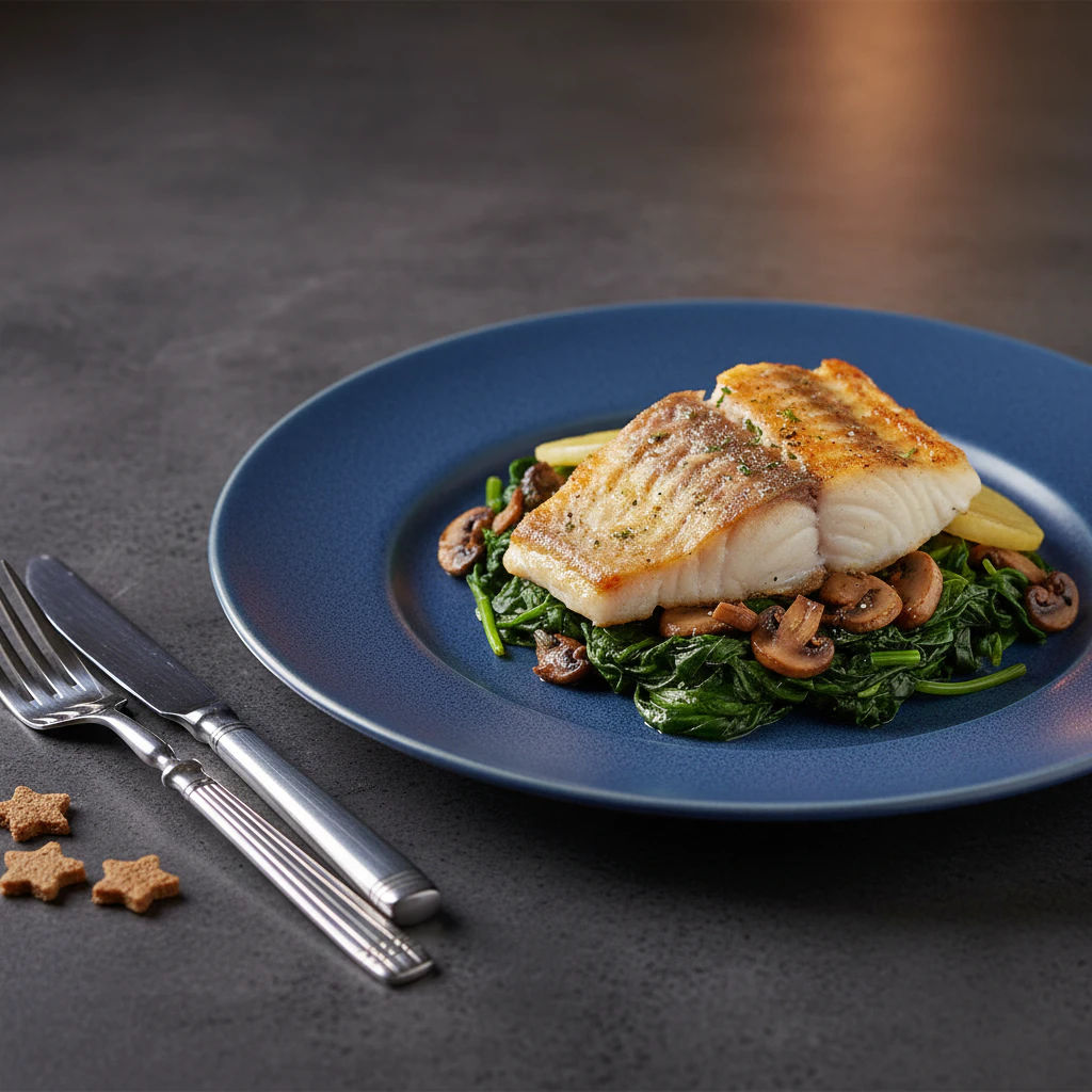 Um clássico bacalhau assado, com o toque especial dos cogumelos e espinafre salteados. Receita saborosa e fácil de preparar, perfeita para um jantar especial.