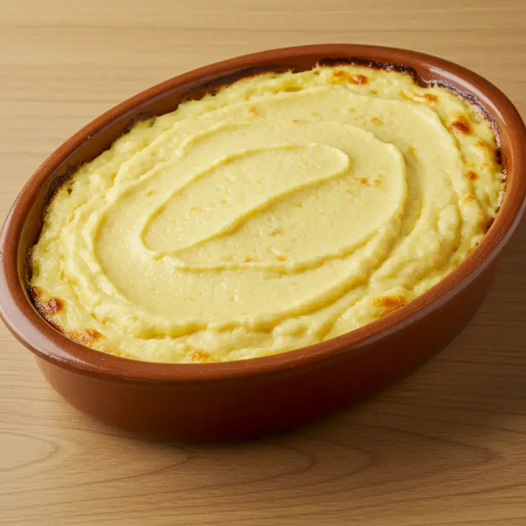Unte um refratário grande com manteiga e espalhe o purê no fundo.