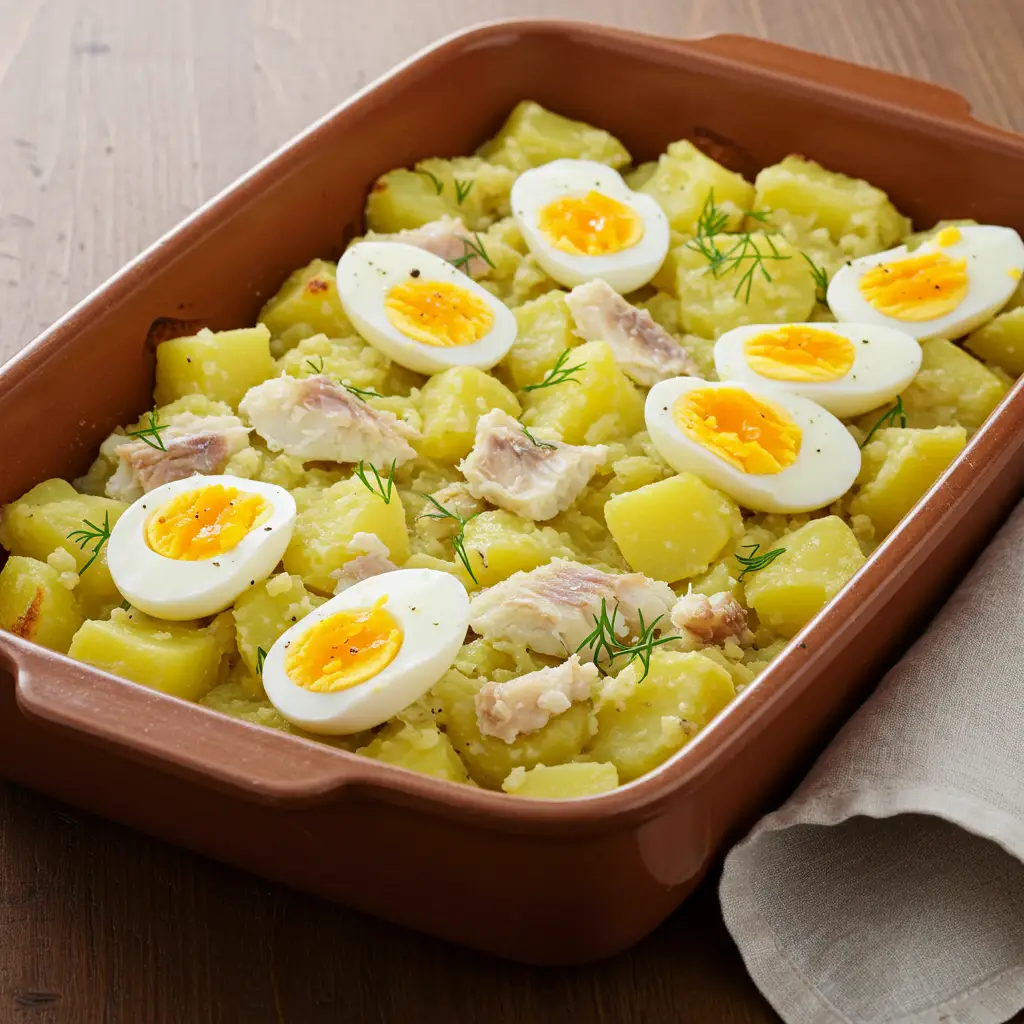 Um bacalhau cremoso e saboroso, gratinado com batatas macias, azeitonas suculentas e um toque de alho. Uma receita clássica, perfeita para um jantar especial.
