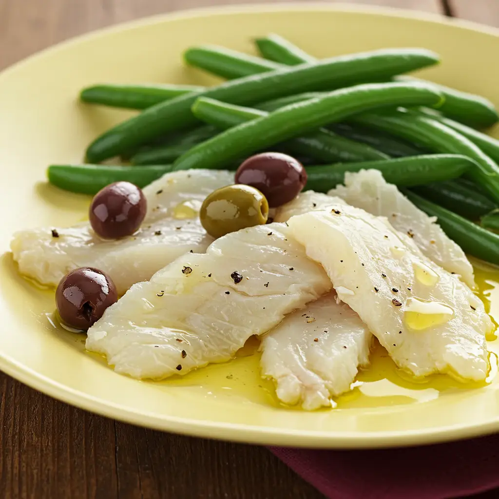 Um bacalhau saboroso e fácil de preparar, gratinado com batatas, vagens, brócolis e azeitonas pretas. Uma receita clássica, perfeita para um jantar especial.