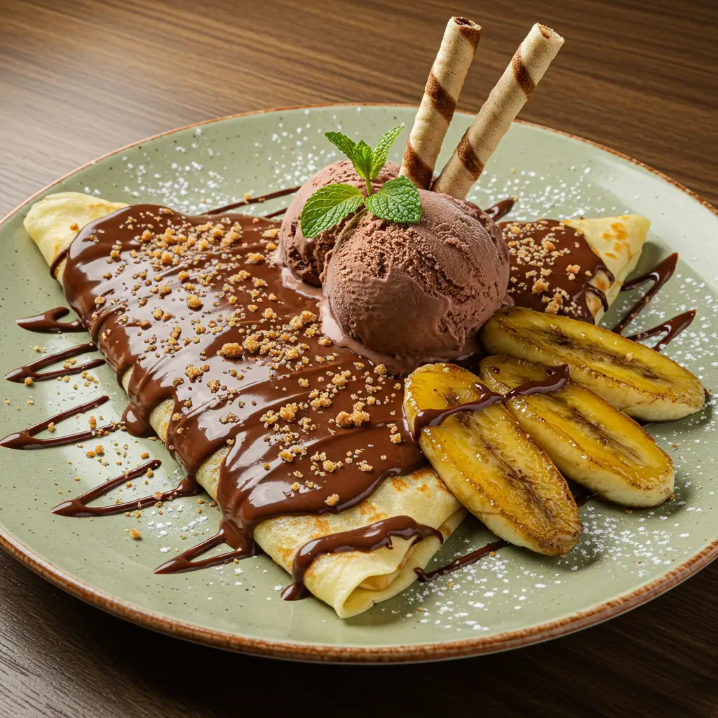 Deliciosas bananas nanicas caramelizadas em uma irresistível calda de chocolate, finalizadas com uma bola de sorvete cremoso. Uma sobremesa simples e sofisticada, perfeita para encantar seus convidados.