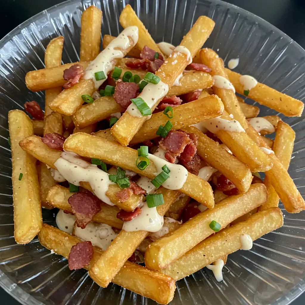Uma explosão de sabores! Batatas fritas crocantes, combinadas com a suculência da calabresa e bacon, envoltas em um cremoso queijo derretido. Uma receita perfeita para um lanche ou acompanhamento inesquecível.