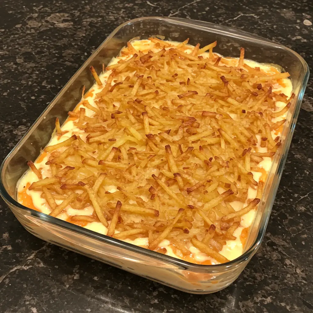 Retire do forno, decore com batata palha e sirva imediatamente.