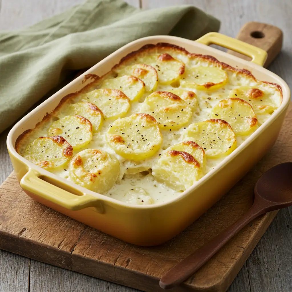 Uma gratinada cremosa e saborosa, perfeita como acompanhamento de carnes ou aves. As batatas finas, intercaladas com manteiga e ervas aromáticas, resultam em uma textura irresistível.