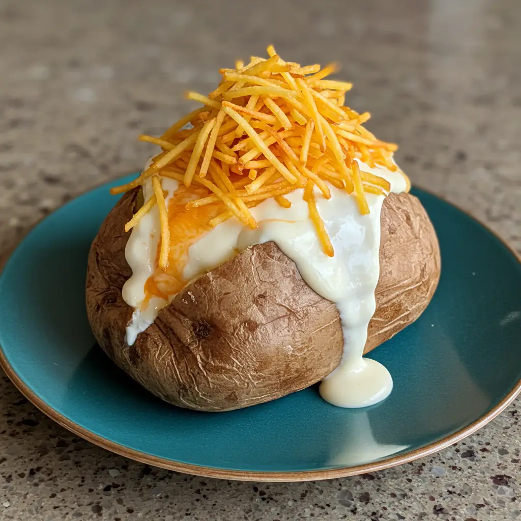 Uma deliciosa batata recheada, combinando frango, queijos e temperos, perfeita para um prato principal saboroso e reconfortante. Ideal para reunir a família em torno da mesa.