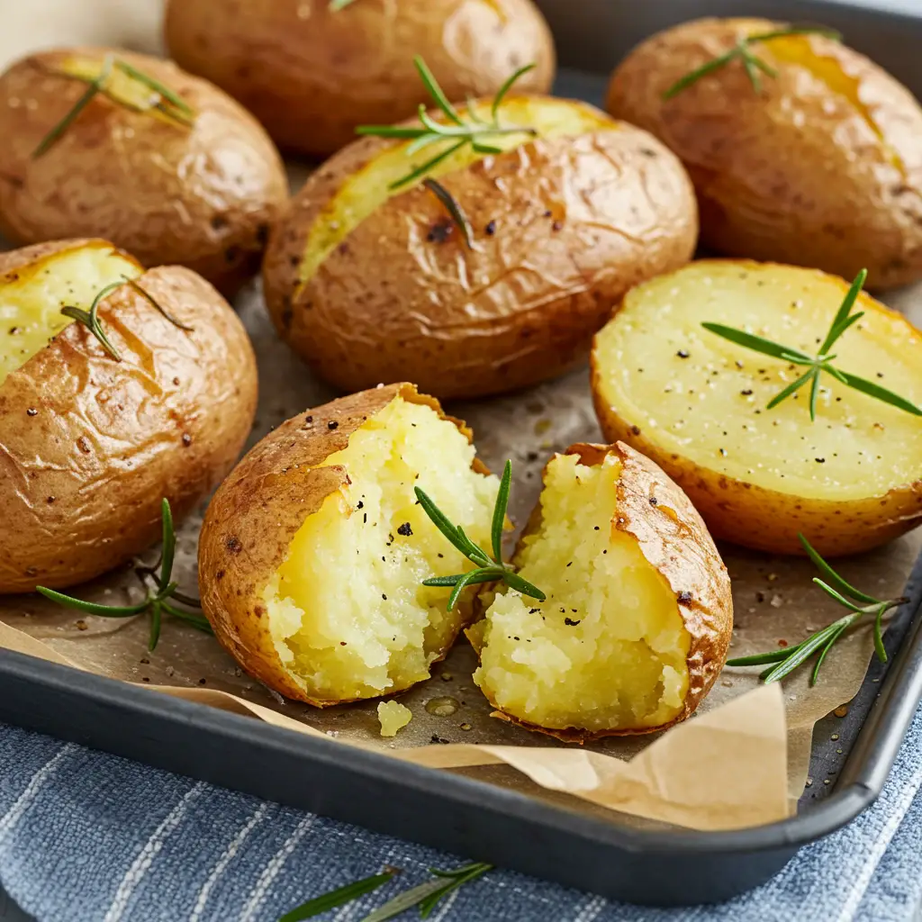 Batatas macias e saborosas, assadas no forno até ficarem douradas e crocantes por fora. Um acompanhamento perfeito para carnes e aves. Simples de fazer e irresistível!