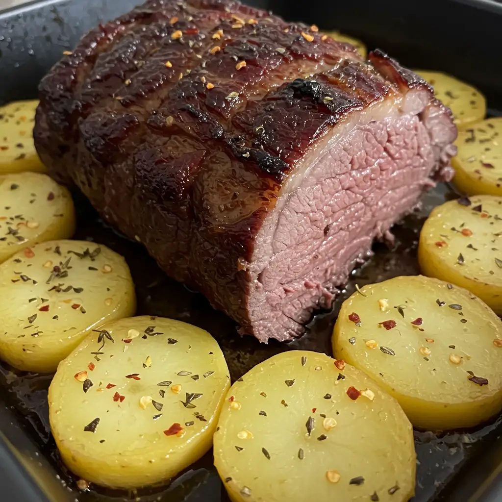 Asse por aproximadamente 45 minutos, ou até que as batatas estejam macias e levemente douradas.