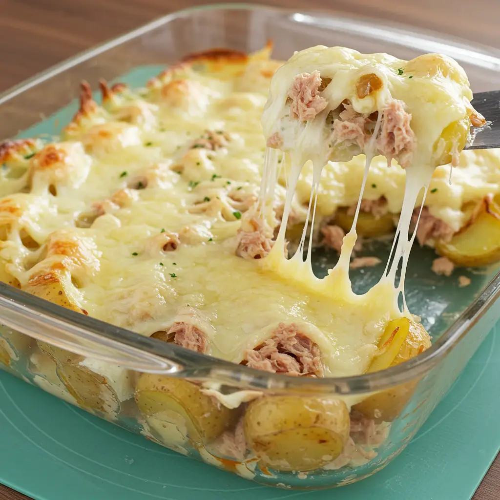 Deliciosas batatas bolinha assadas, cobertas com uma irresistível mistura de atum, cebola caramelizada e queijos derretidos. Uma explosão de sabores que vai conquistar seu paladar!
