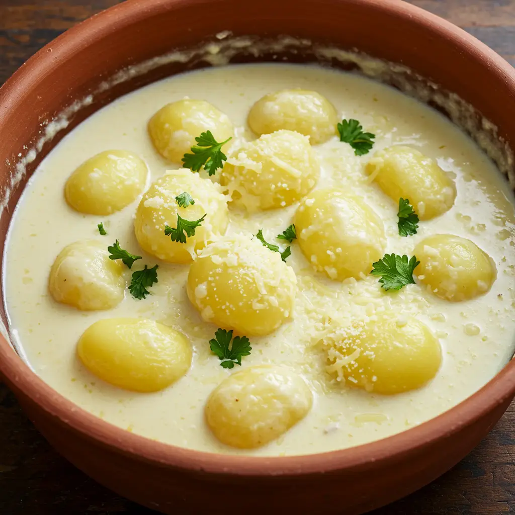 Um clássico reconfortante! Batatas macias e cremosas, cozidas no leite e realçadas com o sabor delicado do caldo de galinha e um toque de queijo ralado. Uma receita simples e deliciosa para o seu dia a dia.