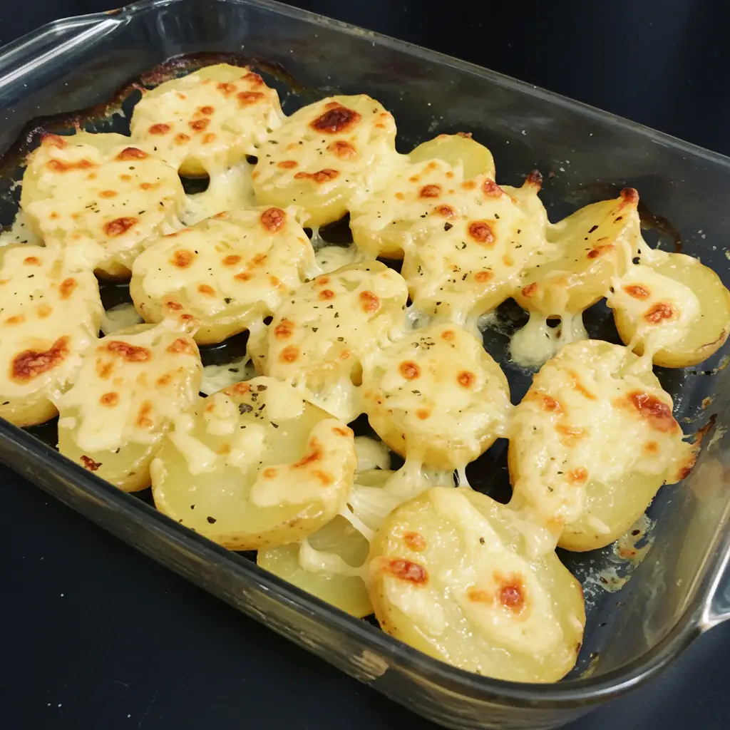 Batatas assadas com casca, macias por dentro e crocantes por fora, cobertas com queijo derretido e um toque de ervas. Uma receita simples e deliciosa, perfeita para um acompanhamento ou até mesmo um prato principal!