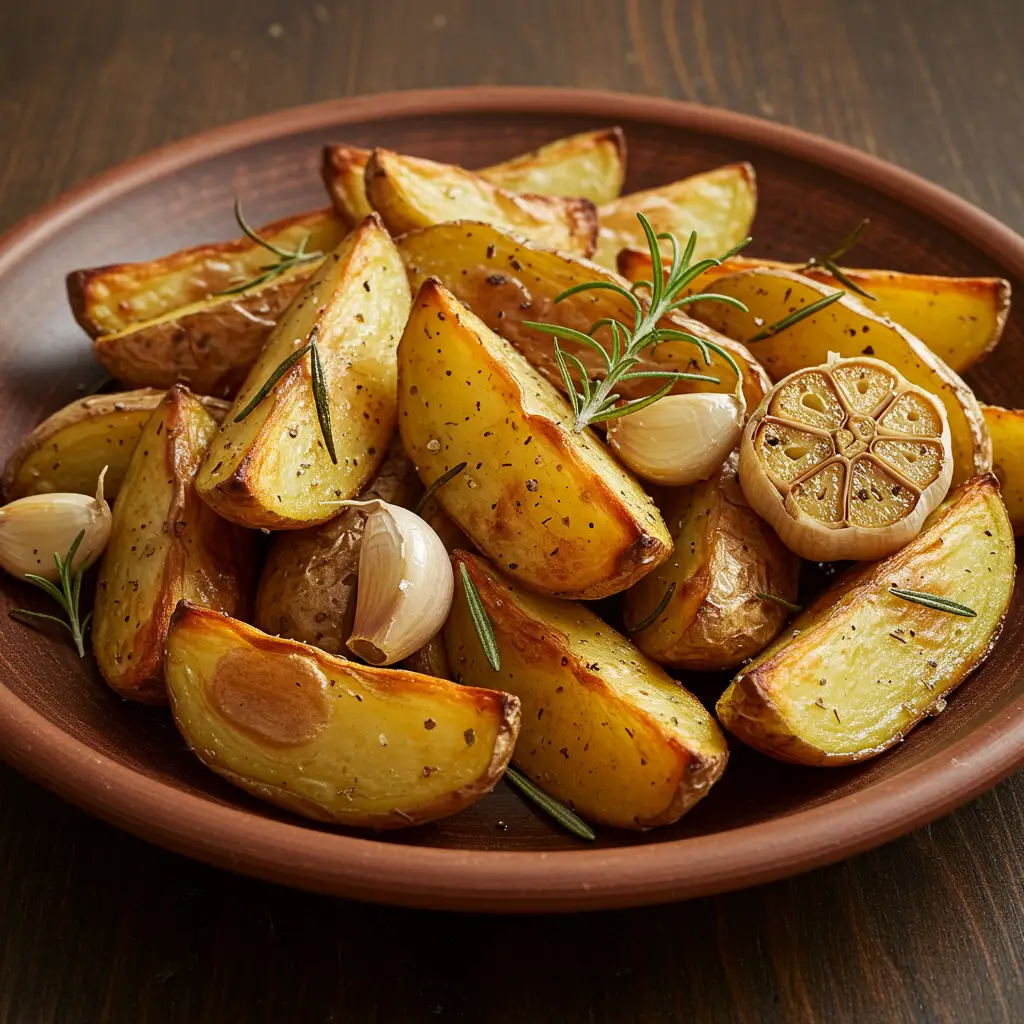 Batatas assadas com casca, temperadas com alecrim e alho, crocantes por fora e macias por dentro. Uma opção deliciosa e fácil para acompanhar carnes ou como petisco.