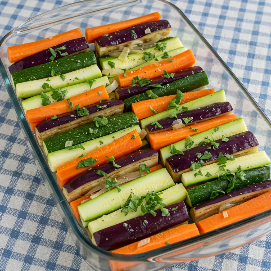 Delicie-se com esta saborosa berinjela recheada com uma combinação de legumes frescos e queijo, assada até a perfeição. Uma opção saudável e irresistível para qualquer refeição!