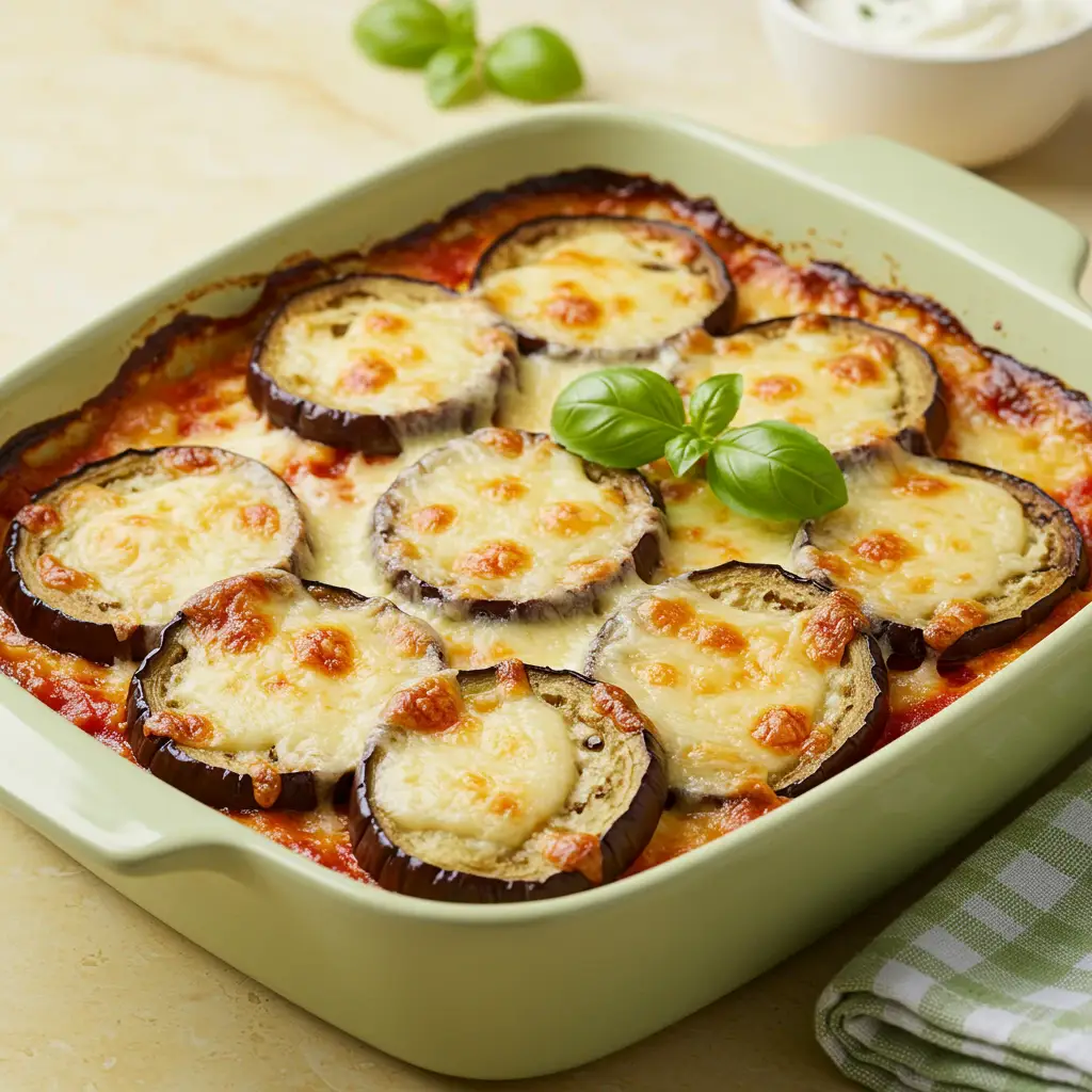 Uma versão deliciosa e prática da berinjela à parmegiana. Fatias de berinjela suculentas, cobertas por um molho saboroso de tomate e cebola, finalizado com mussarela derretida. Perfeita para um jantar em família!