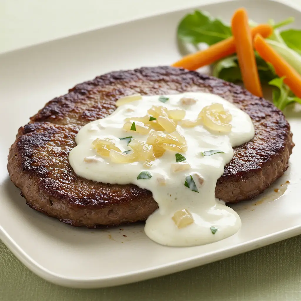Um clássico bife acebolado com um toque especial: um molho cremoso de maionese que derrete na boca! Delicioso e fácil de fazer, perfeito para um jantar rápido e saboroso.