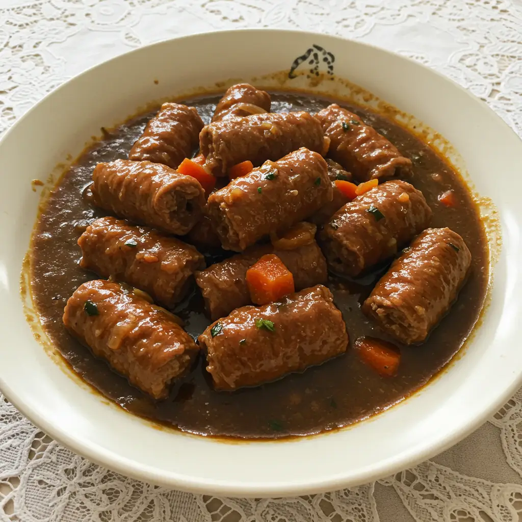 Disponha os bifes à rolê por cima do caldo.