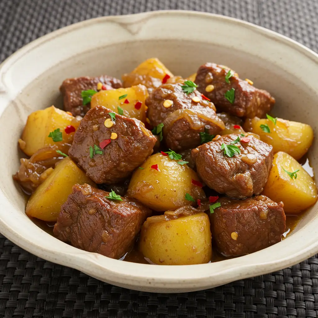 Um bife suculento e prático, feito na panela de pressão. A combinação de coxão mole com batatas, cebola e repolho resulta em um prato completo e saboroso, ideal para o dia a dia.
