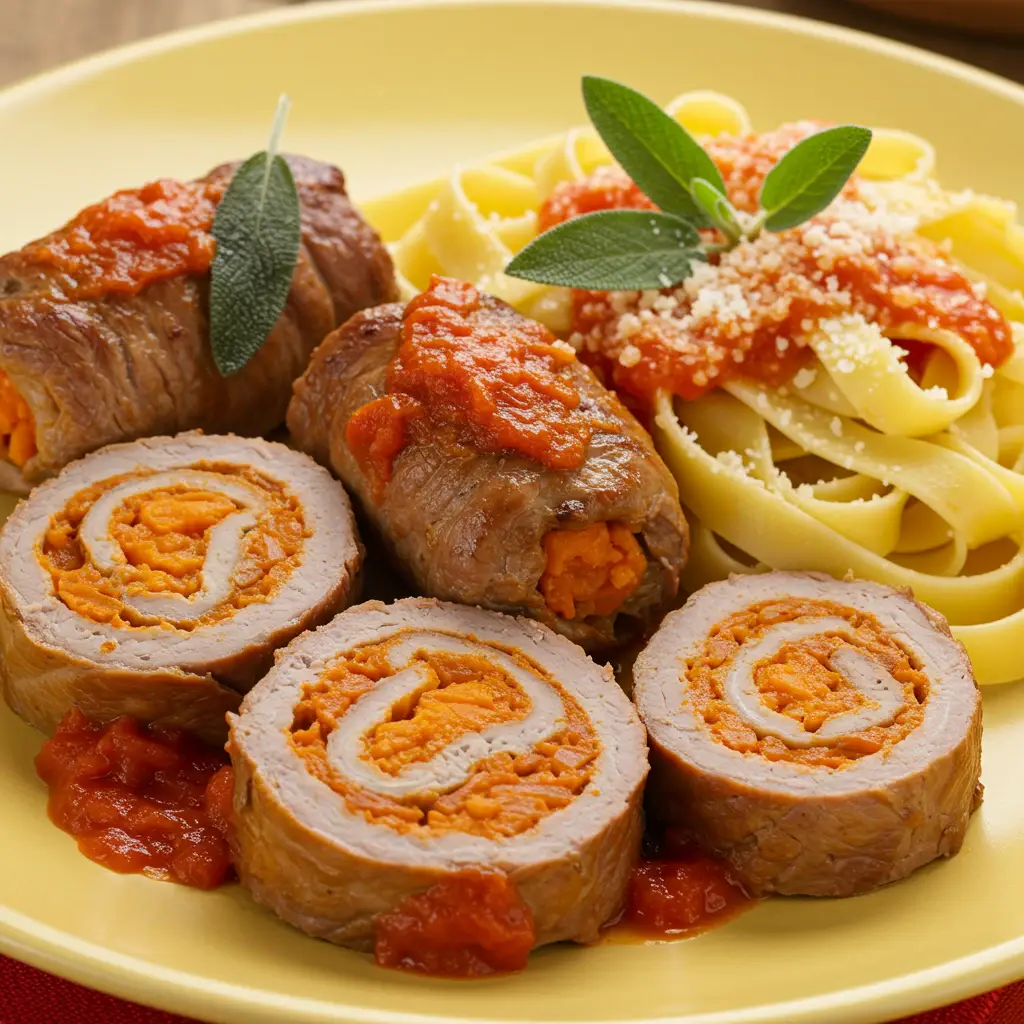 Um bife rolê suculento e saboroso, com um delicioso recheio de pancetta e sálvia, envolto em um molho de tomate aromático e vinho branco. Uma receita clássica da culinária brasileira, perfeita para um jantar especial.