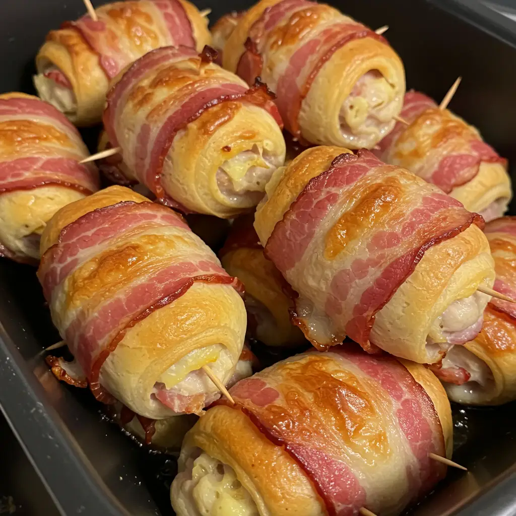 Delicioso bife de frango recheado com mussarela e presunto, envolto em bacon crocante e finalizado com um molho saboroso de cebola e caldo de galinha. Uma receita prática e perfeita para um jantar especial!