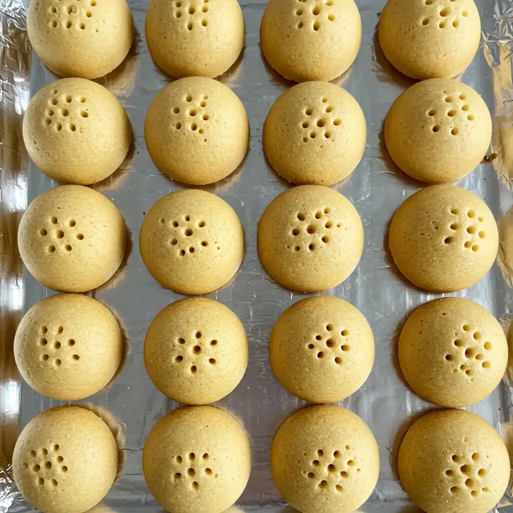 Modele pequenas bolinhas com a massa e coloque-as em uma assadeira untada, deixando espaço entre elas.