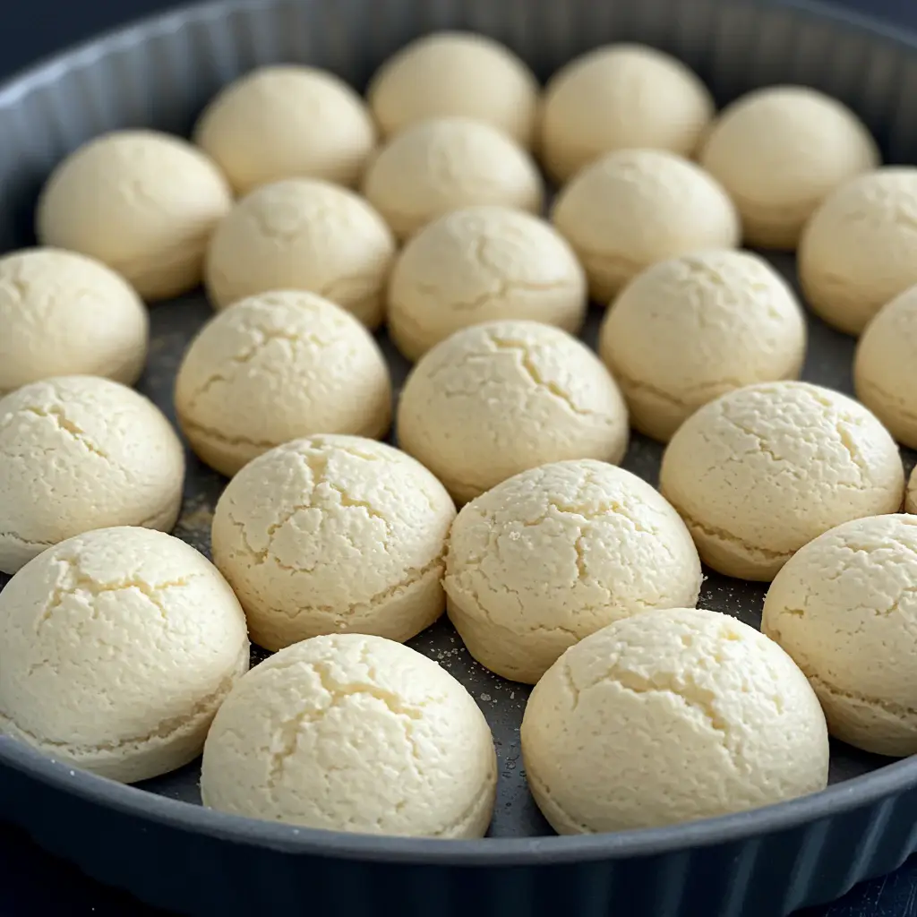Faça bolinhas pequenas com a massa e disponha-as na forma, deixando um espaço entre elas.