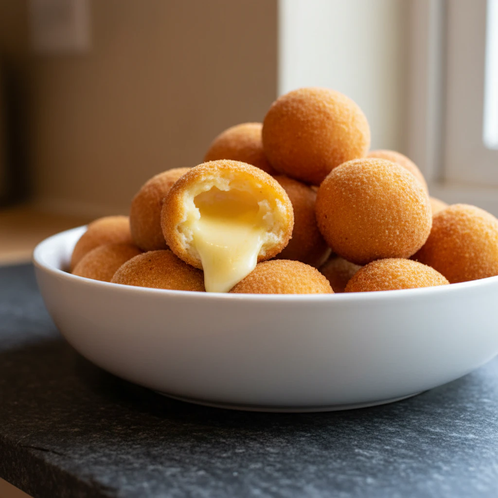 Deliciosas bolinhas de queijo, crocantes por fora e com um irresistível recheio de mussarela derretida. Uma receita fácil e perfeita para um lanche da tarde ou aperitivo.