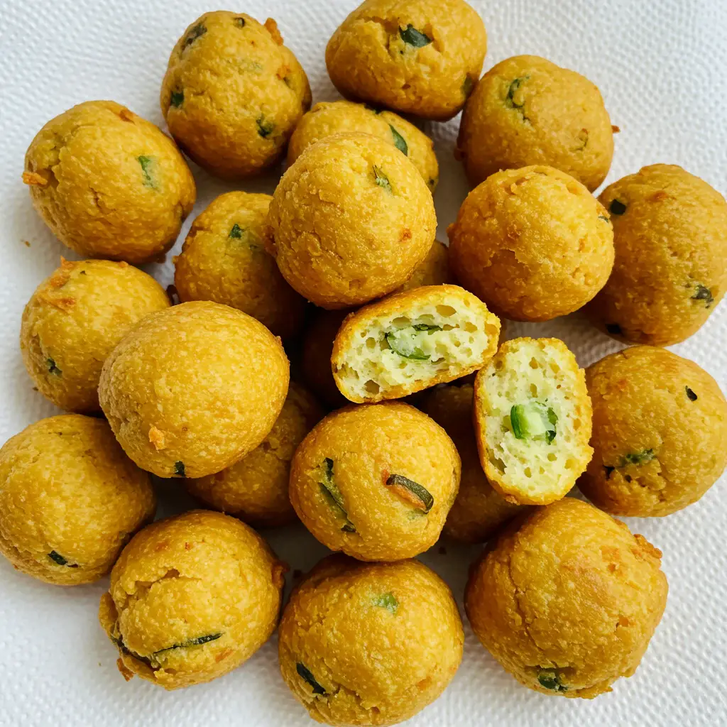 Frite os bolinhos em óleo quente até dourarem por igual.