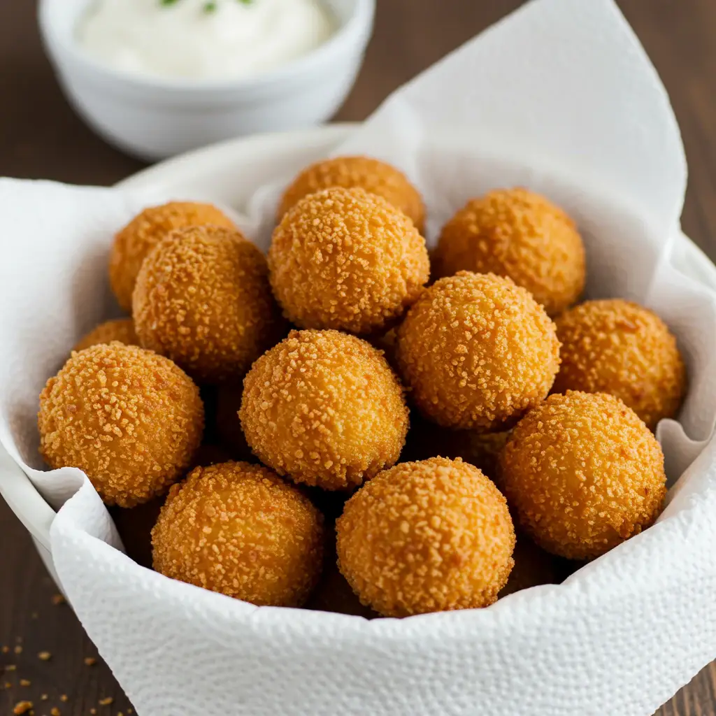 Frite os bolinhos até que fiquem dourados e crocantes, cerca de 3-4 minutos de cada lado.