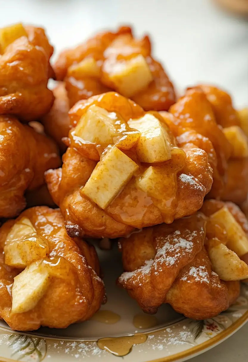 Deliciosos bolinhos de maçã crocantes com uma cobertura doce. Perfeitamente temperados e recheados com pedaços suculentos de maçã. Uma iguaria encantadora para qualquer ocasião.